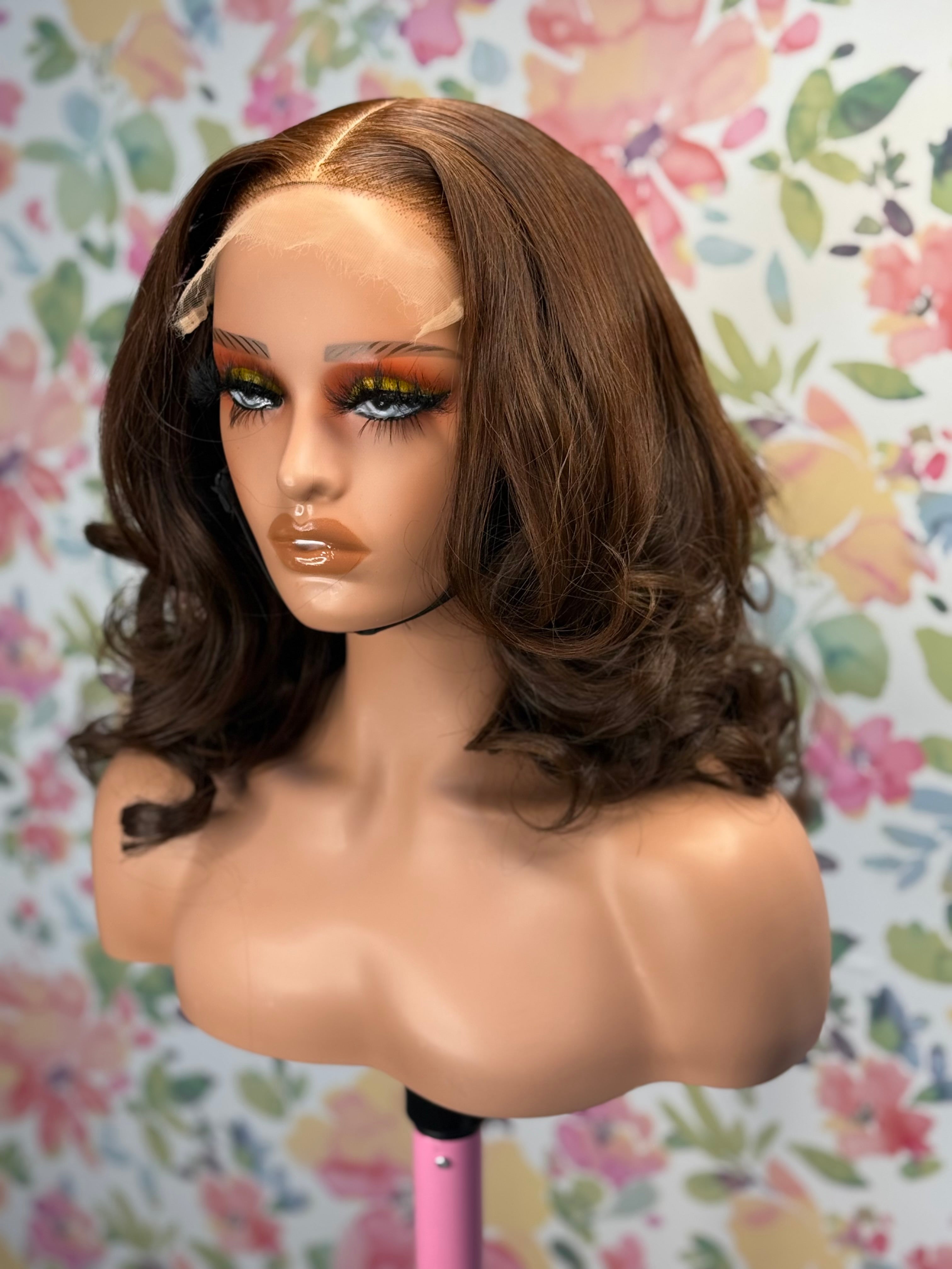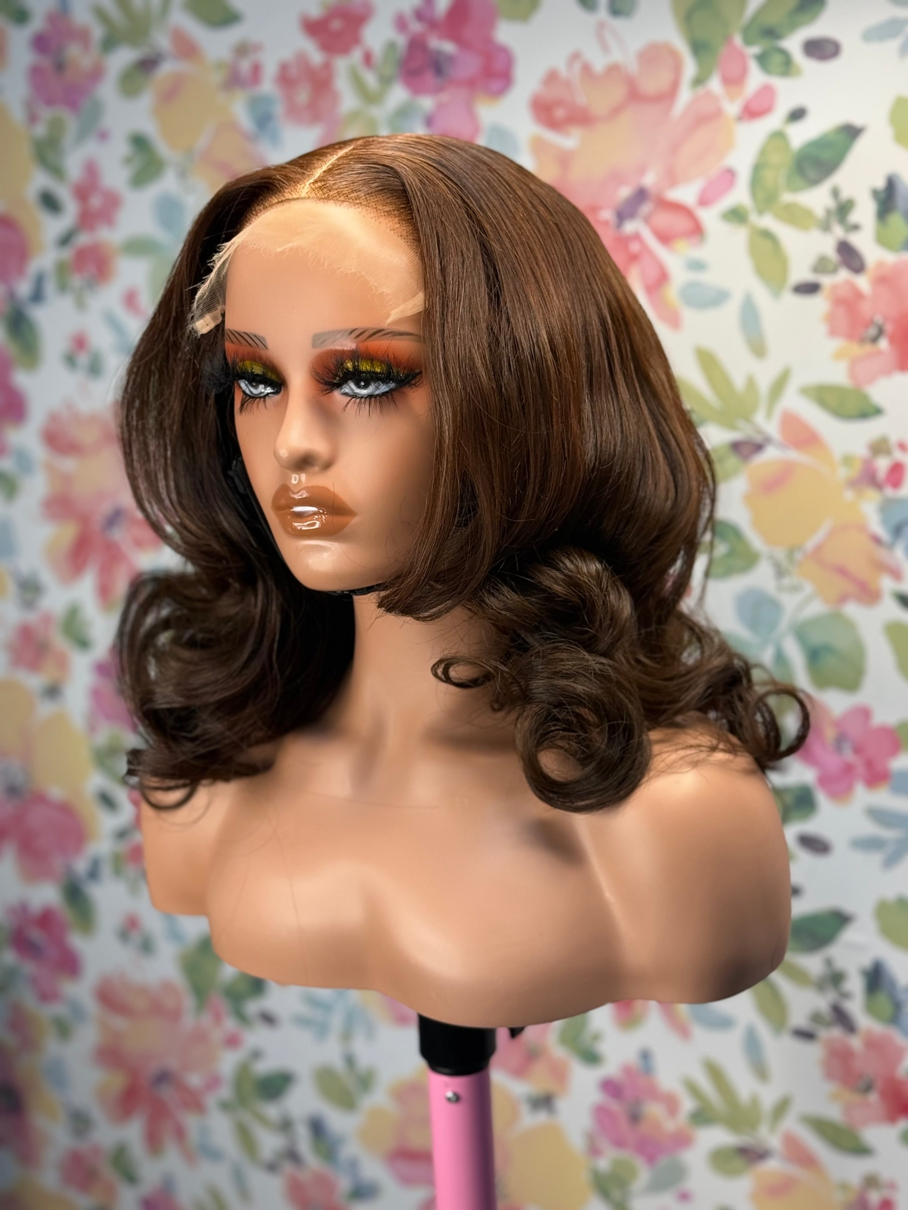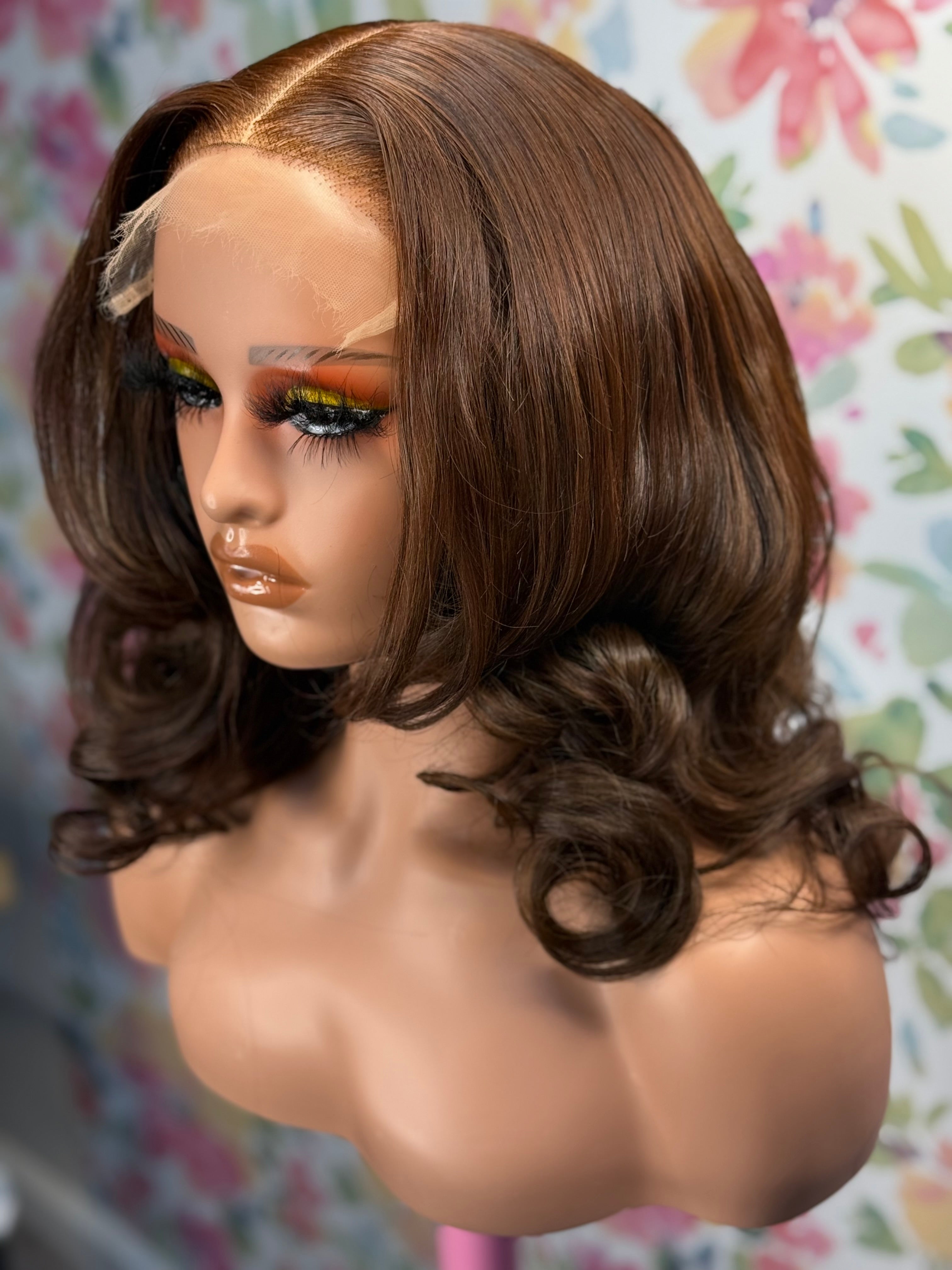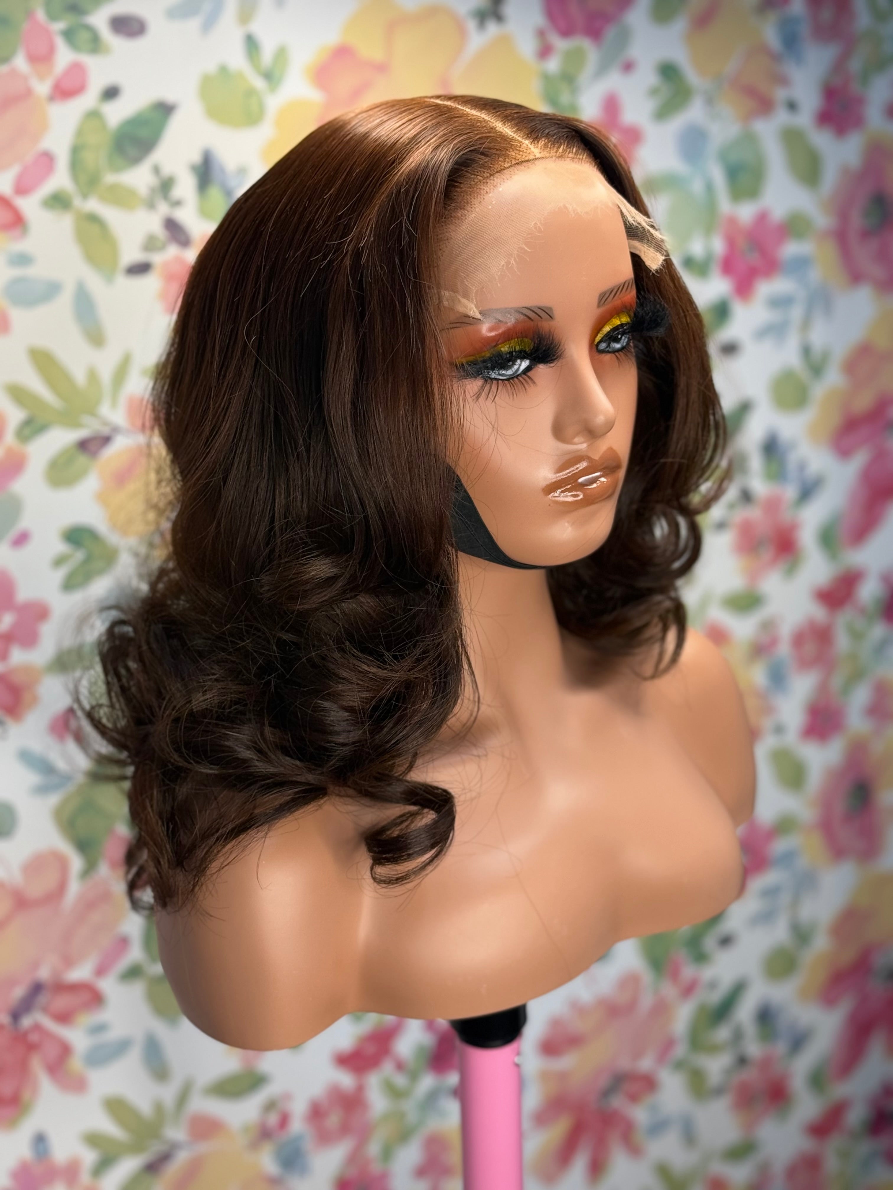 Experience the pinnacle of luxury and elegance with Amber Waves, a premium lace front wig crafted from 100% raw human hair sourced from a single donor. Designed for those who demand both style and authenticity, this wig features warm brown tones paired with soft, flowing body waves that exude natural beauty.